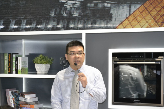 Rosières发布会现场,意大利CANDY集团全国销售总监章斌现场致辞:今年是中法文化交流之春活动连续开展第十三届,法国也是一带一路国策的主要支持地区,正是以上多重利好因素,在中法两国多个机构的努力促成下,Rosières这个超过150年历史的高端厨电品牌正式进入中国,并将成为法式饮食文化大使,在中法之间架起友谊的桥梁。