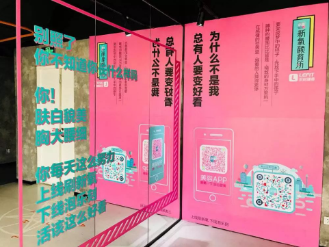获得中国美业营销创新奖的新氧“颜救所”,以新颖创意的快闪店模式出现在各大连锁轻医美、美妆、珠宝、健身、甜品等场所,大片少女粉与时尚蓝撞色的墙面和巨大的落地镜,吸引注重自我管理的消费者更加关注对美和健康的追求。